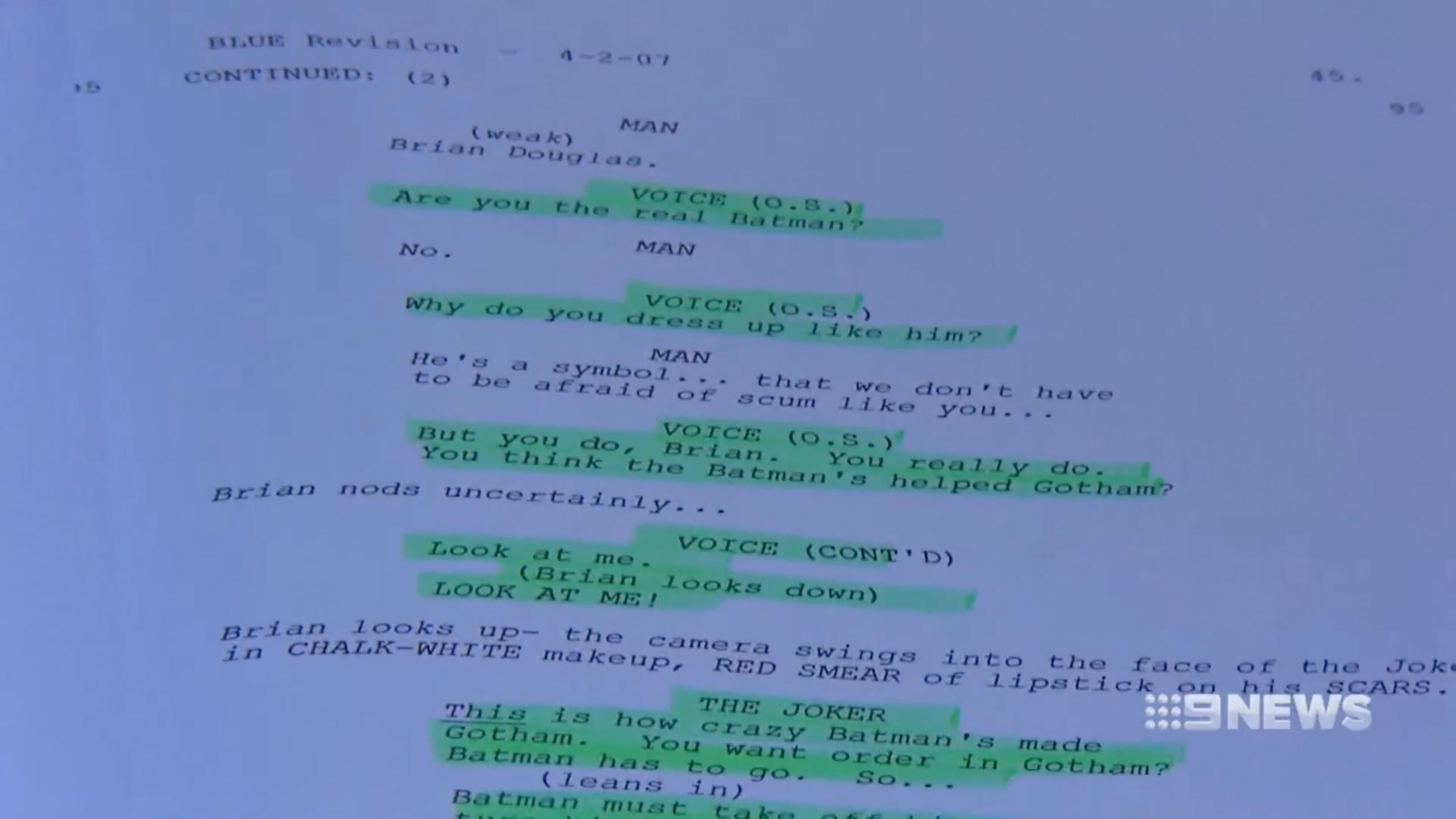 Heath Ledger's personal script from the production of 'The Dark Knight'.
