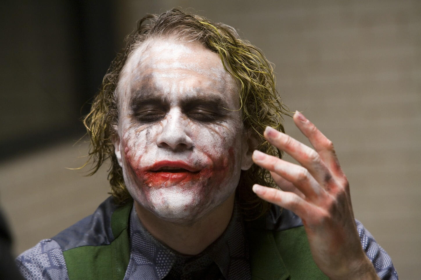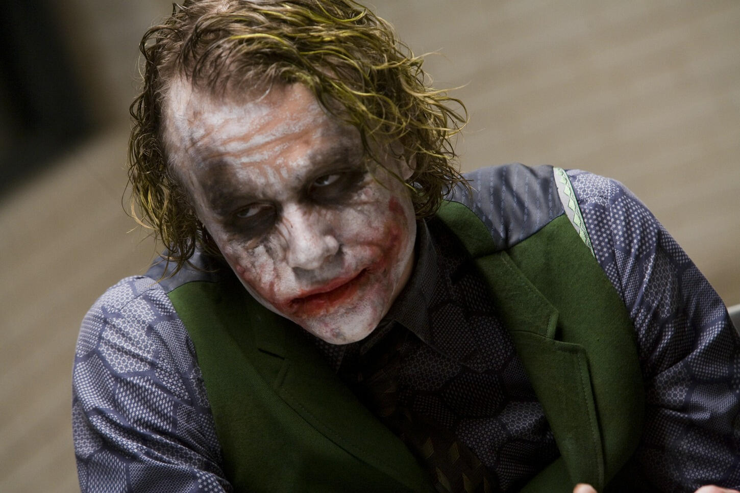 Yeah, you feel like there's a grime to him. I showed Heath some Francis Bacon paintings, which have a particular smudged, smeared effect that I thought was very evocative of human decay and corruption.To me, the most unsettling part of his performance is that tic where he licks his lips.