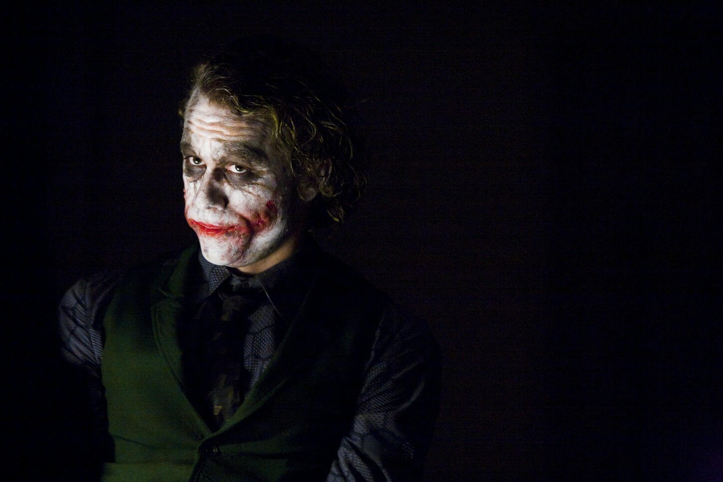 Really, in a sense, he chose me. I had met with him about a couple of films; I had actually met him in relation to Batman Begins as well. I really thought he was a great actor, and he graciously came and met me for a drink to explain why he would never really do this kind of movie. He was very polite about it; he was a very lovely guy. I thought it’s a shame I can’t convince you, but this is what we are trying to do with this film, it’s a bit different really.I think when he saw Batman Begins he understood the things I said about doing it differently and felt that I had done it. So I met with him for The Joker and really I didn’t know if it was something he would be interested in. I wasn’t sure if I felt he was right for it. I think he’s a fantastic actor, but you never knew what kind of different take someone else would have on a character. So I chatted with him for a couple of hours in my office about who the character was going to be — we didn’t have a script at that point — but we knew who he was, and where he was going to go, and it was very much what Heath had in mind, and he was very determined to get it down. The way he explained it to me was he didn’t like to really work too much. He liked to do a character and then stop working, and then let enough time go by that he really needed to work again. He wanted to be hungry, and when he came to set, you can see how hungry he was to get it down.You spoke about how Heath had a similar view of The Joker as you and the writers, but when did you first see him do The Joker, sort of full blast? Did you have rehearsals or talk about the voice or the ticks, because it’s certainly an extraordinarily well-developed character.