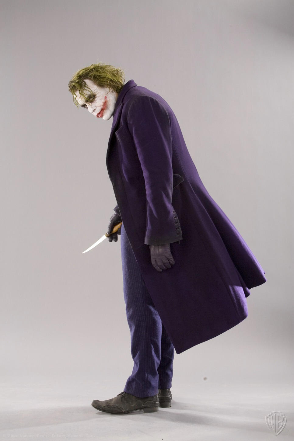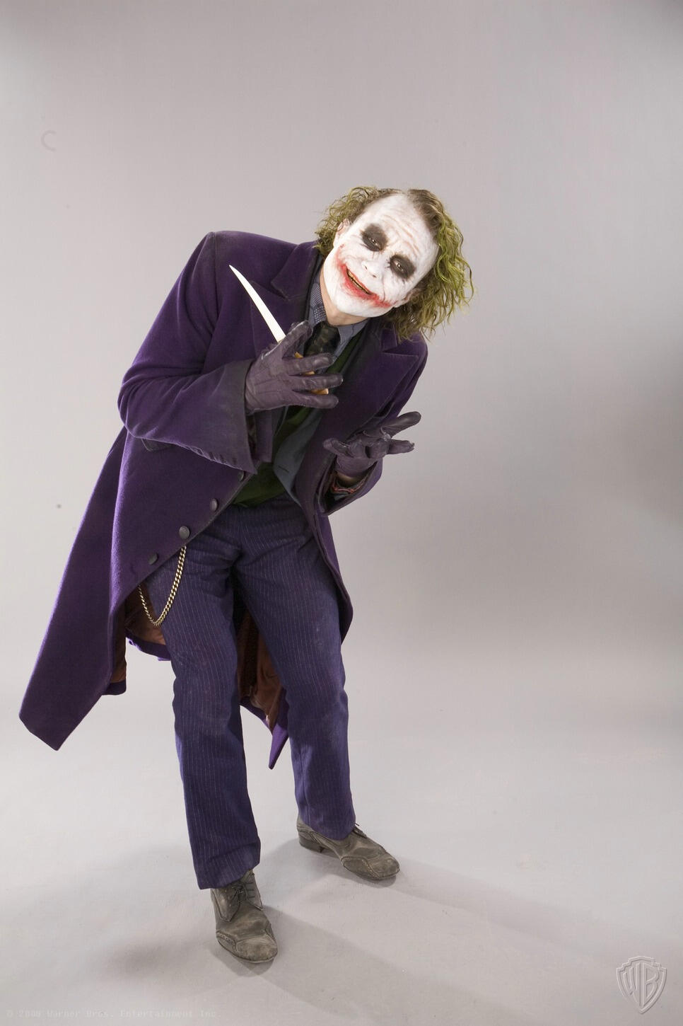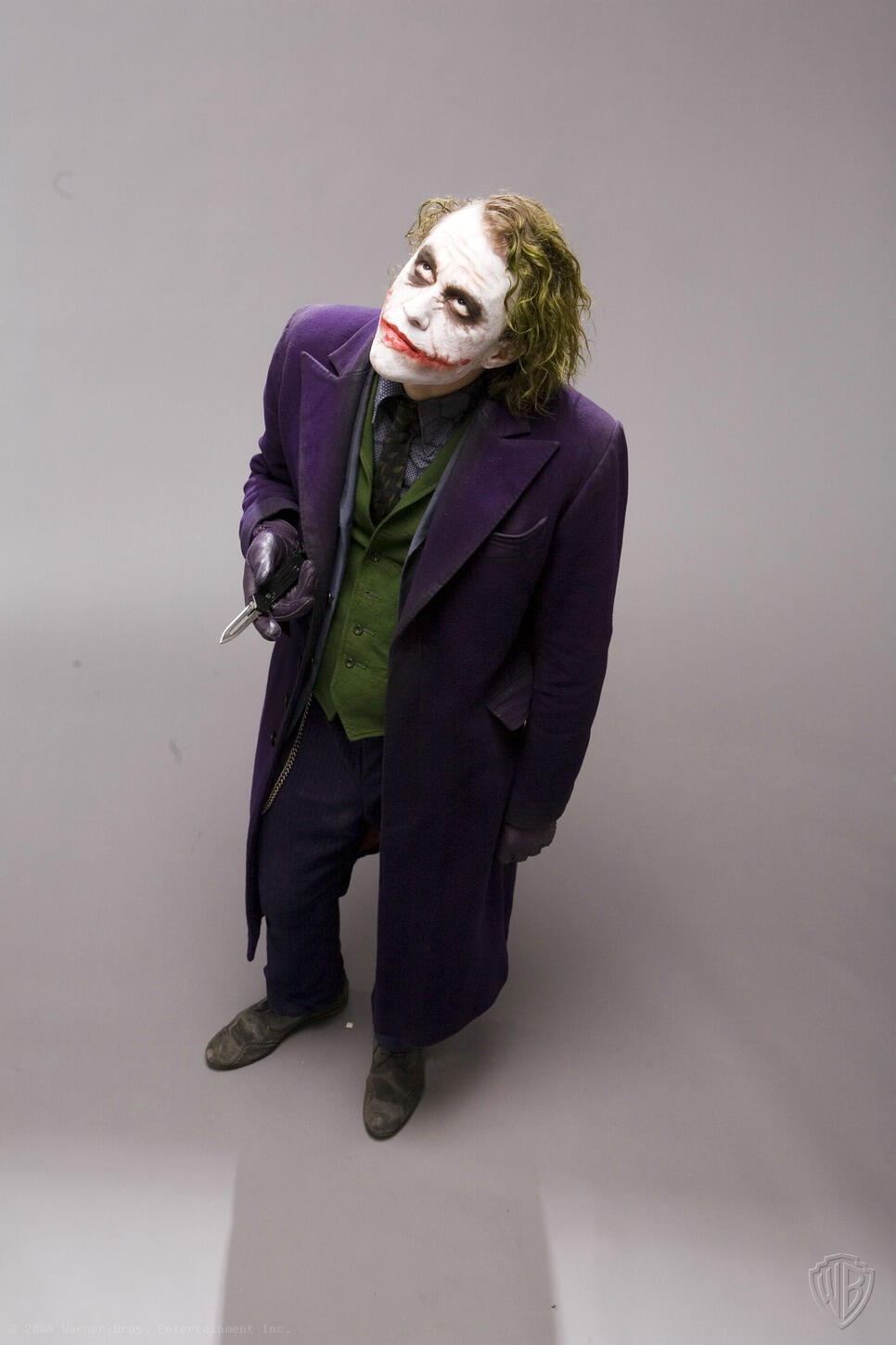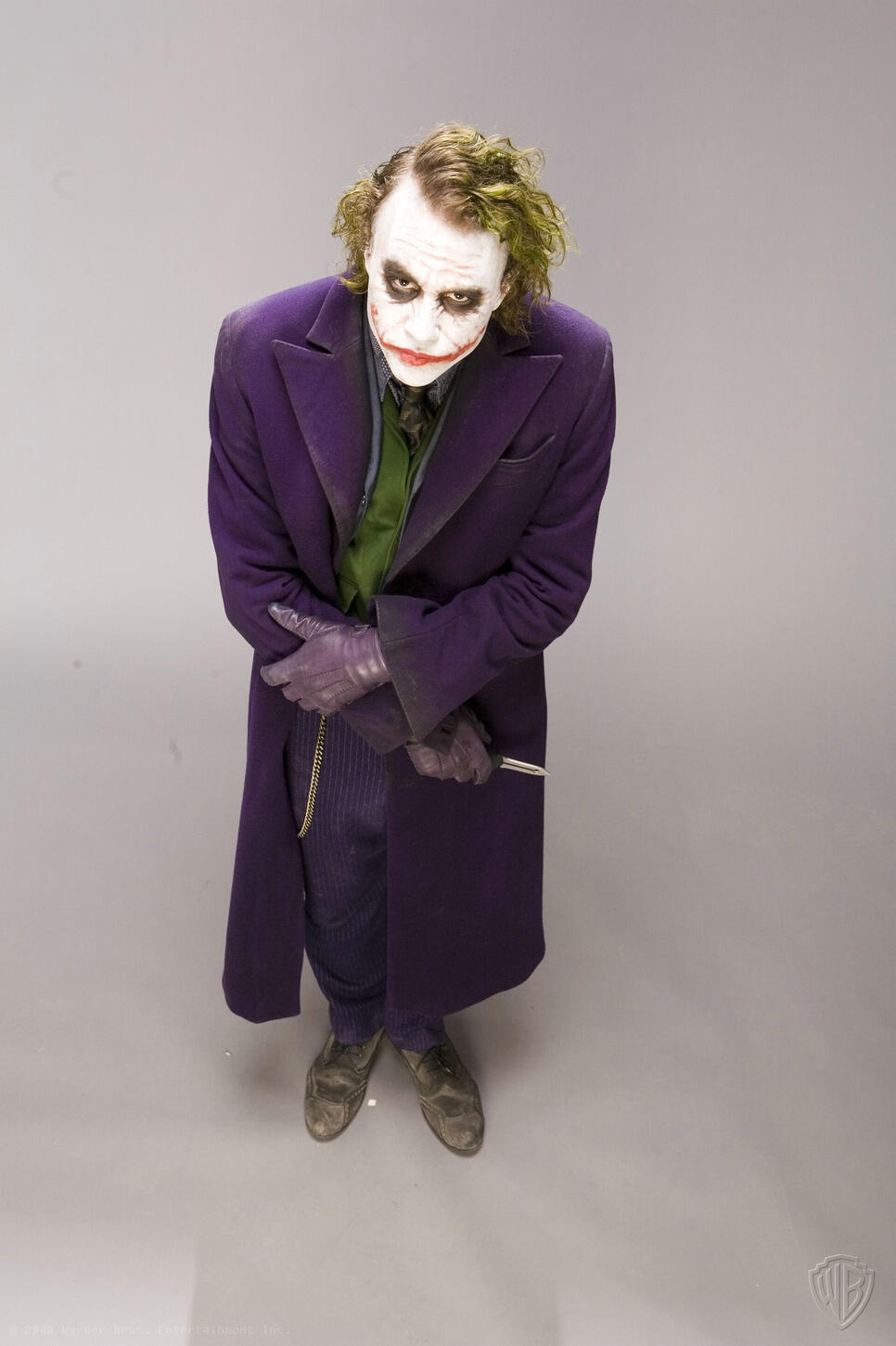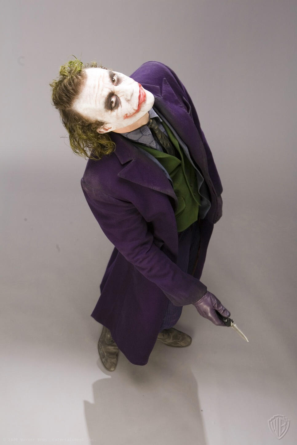 Months before the release of "The Dark Knight", David Erwin, former Executive Creative Director of DC Comics, collaborated with Christopher Nolan to set the vision for the project. He was involved in every aspect, including directing actors during photo shoots for theatrical marketing, promotions, and licensed merchandise.He says: "I would direct all the photo shoots"... "We were shooting and I felt Heath was starting to burn out", remembers Erwin. "The propmaster had told me earlier that Heath was really into knives and would do all these knife tricks. I went over to the propmaster and asked him to bring me one of his knives. Once the knife came in, Heath just kind of lit up again. He found renewed energy".