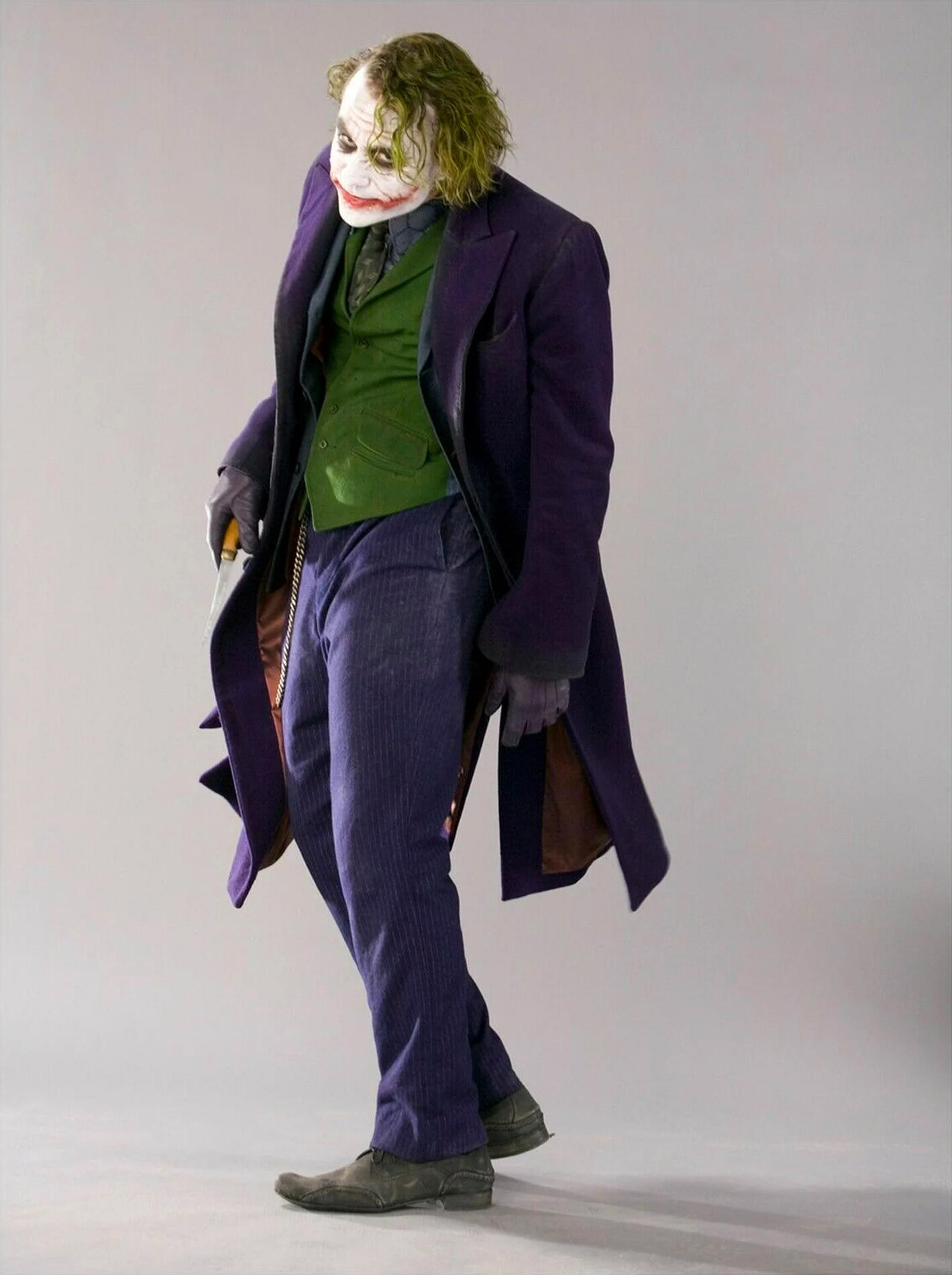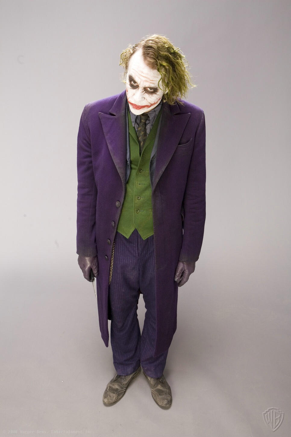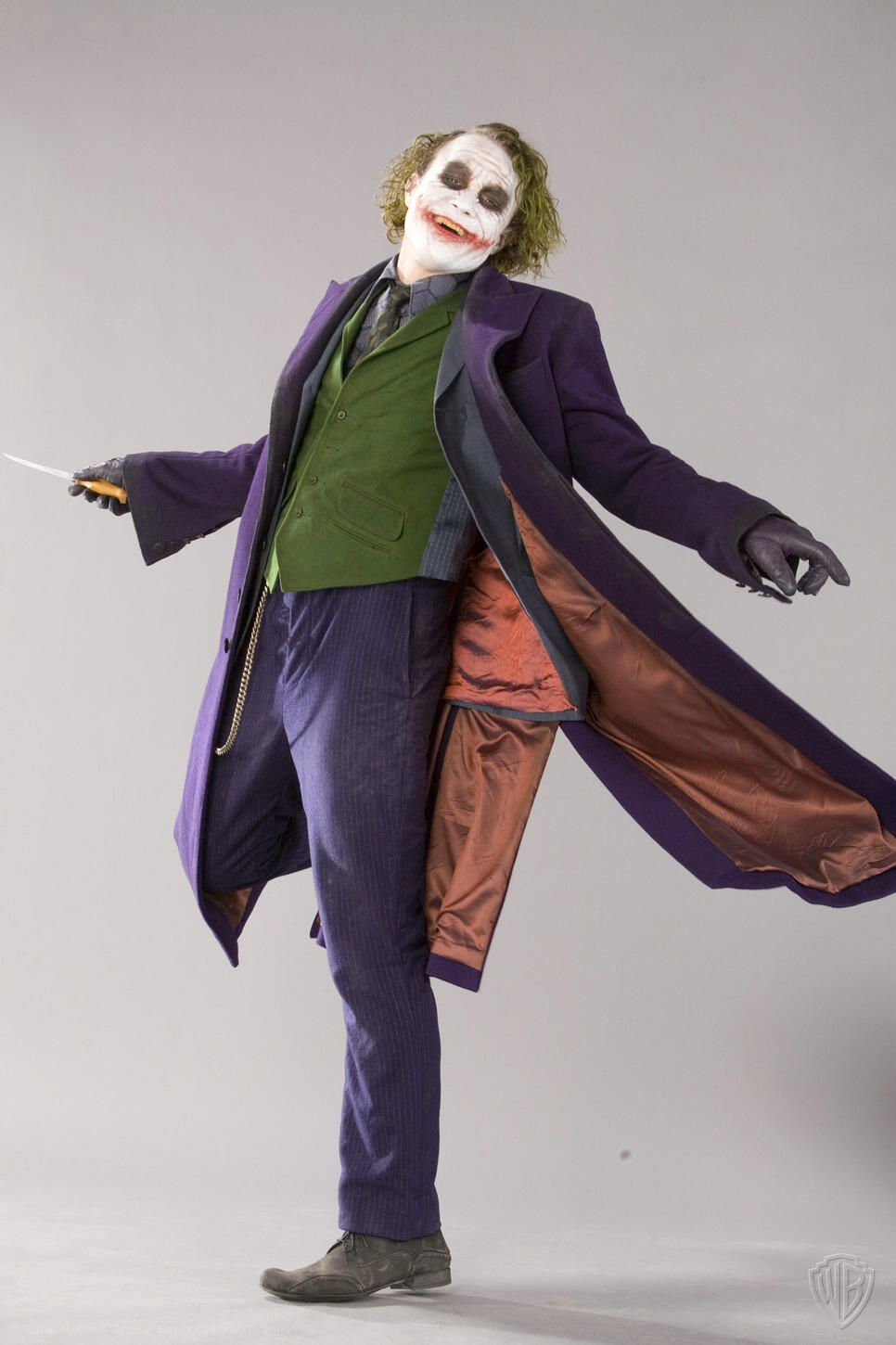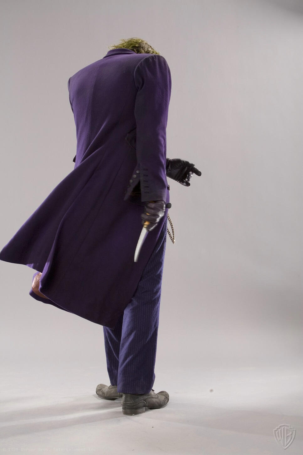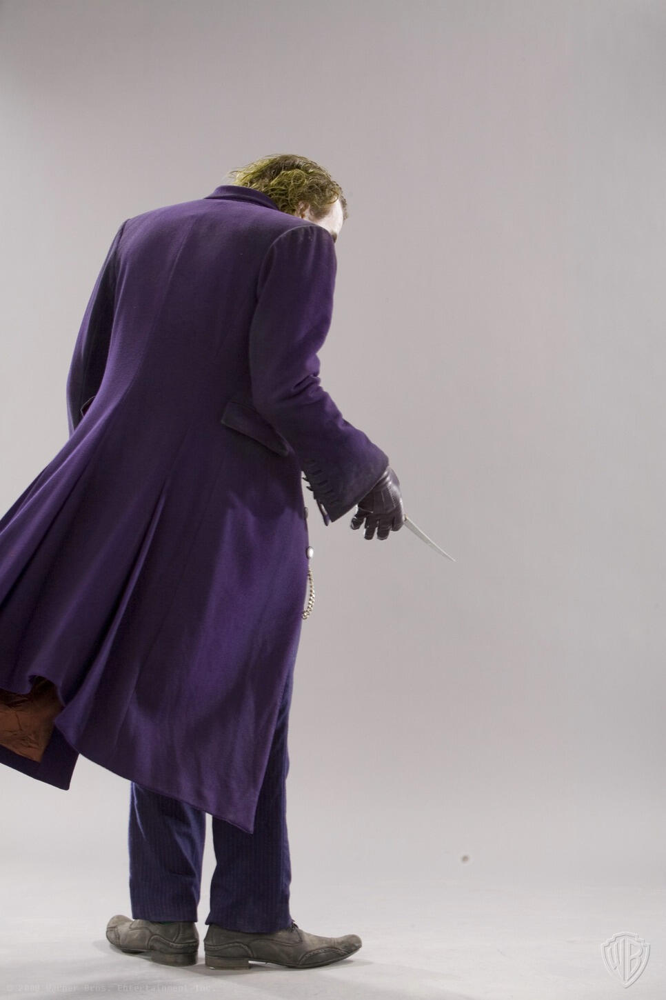 Months before the release of "The Dark Knight", David Erwin, former Executive Creative Director of DC Comics, collaborated with Christopher Nolan to set the vision for the project. He was involved in every aspect, including directing actors during photo shoots for theatrical marketing, promotions, and licensed merchandise.He says: "I would direct all the photo shoots"... "We were shooting and I felt Heath was starting to burn out", remembers Erwin. "The propmaster had told me earlier that Heath was really into knives and would do all these knife tricks. I went over to the propmaster and asked him to bring me one of his knives. Once the knife came in, Heath just kind of lit up again. He found renewed energy".