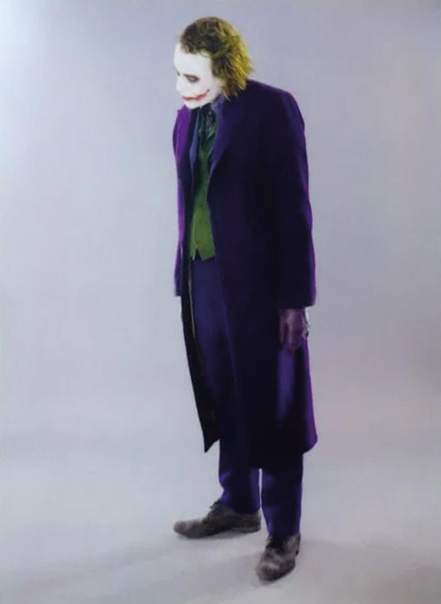 Erwin describes the experience of working with the late actor as "truly magical" and unlike anything he's seen before or since. "No matter what you do, you always learn something", he explains. "Christian Bale, for example, wants direction. When I was working with him, he wanted my direction and was looking for it. Then you have Heath. I went and reviewed everything with him and we talked it over. We’re in front of the camera and then I get out of camera and then slowly, I just see him morph his physical being, spreading his feet out like Charlie Chaplin, starting to hunch over. He starts talking to himself and the next thing I know, the actor Heath that I was just talking to has completely vanished and I am there now with the Joker... Then after we go through the shoot for a while, or any time I interjected or came in-camera, then I’m back to talking with Heath. Then he’d go right back into the Joker".These are 43 images from the photoshoot. 32 of them were leaked online years ago, while the other 11 have been identified, recovered, and added to attempt a full reconstruction of the session. Additionally, there are three more close-up photos.In my view, all these images hold greater significance compared to scene stills or behind-the-scenes photos. In these shots, Heath poses in character in front of the camera, sometimes looking directly into the lens. It’s as if these images offer an additional interpretation of The Joker beyond what’s shown in the movie.